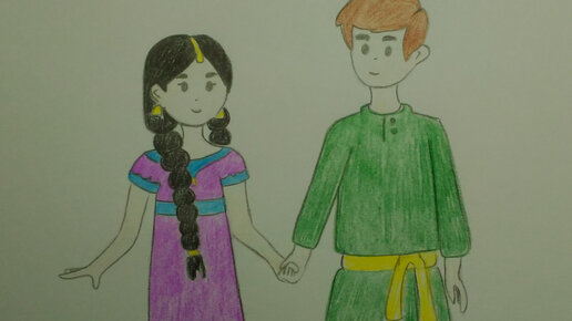 Как нарисовать индийских мальчика и девочку ❃ Народы мира ❃ Задание по рисованию