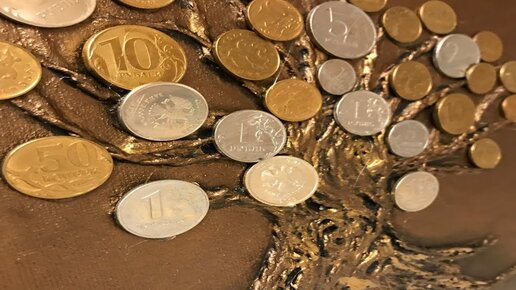 ДЕНЕЖНОЕ ДЕРЕВО ИЗ МОНЕТ ПАННО | картина | Поделка моего 11-летнего сына | DIY