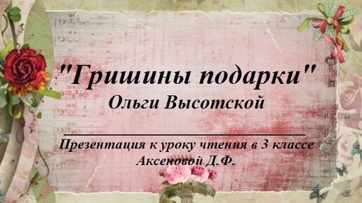 "Гришины Подарки" Ольги Высотской. Презентация к уроку чтения в 3 классе Аксеновой Д.Ф.