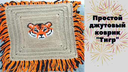 Коврик из дута в смешанной технике "Тигр"/Вязание крючком/Вязание спицами/вышивка по петлям