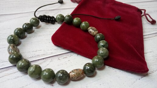Делаю мужской браслет из нефрита и бусин ДЗИ