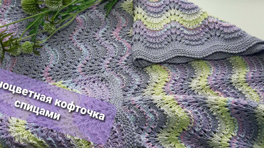 Летняя ажурная разноцветная кофточка спицами "Павлиний хвост", модные цвета. Мастер-класс по вязанию.