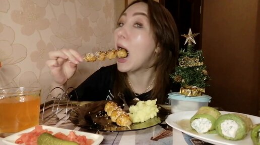 МУКБАНГ/Куриные шарики в соусе, пюрешка