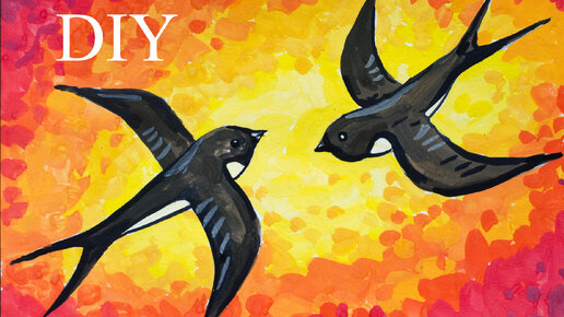 Как нарисовать ВЕСНУ, ПТИЦ, ЛАСТОЧЕК быстро и просто