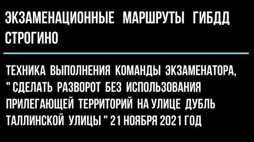Выполнение команды экзаменатора, "Сделать разворот без использования прилегающей территорий на улице дубль Таллинской улицы"