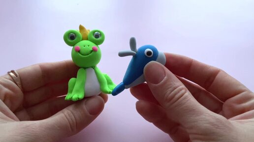 Лепка для самых маленьких. Как слепить лягушку и кита из воздушного пластилина.