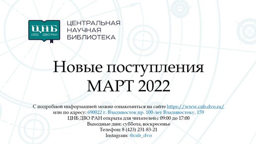 Новые поступления ЦНБ ДВО РАН
