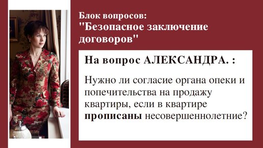 🔴На вопрос Александра: Нужно ли согласие органа опеки на продажу квартиры, если в квартире прописаны несовершеннолетние?