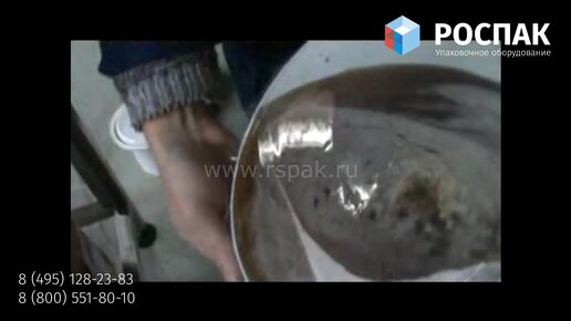 Запайка ПЭТ ведер объемом 5,7, 11,5 и 13,2 литра плёнкой на полуавтомате от РОСПАК (8-495-128-23-83)