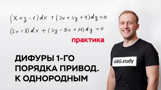 Дифференциальные уравнения 1-го порядка, приводящиеся к однородным (практика)