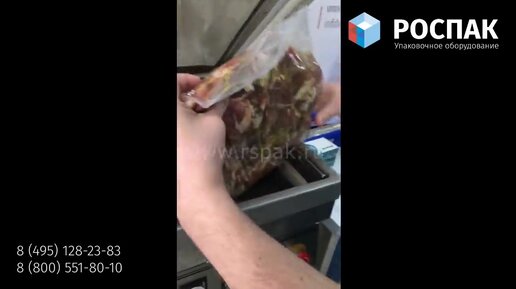 Упаковка шашлыка по 5 кг в вакуум на упаковщике DZ-400_2T от РОСПАК (8-495-128-23-83)