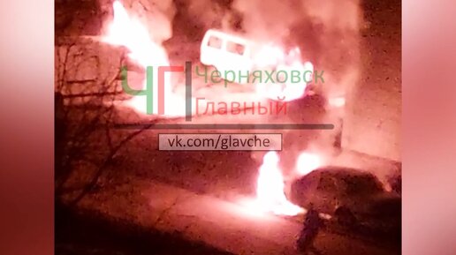 В Черняховске загорелись два микроавтобуса и «Волга»