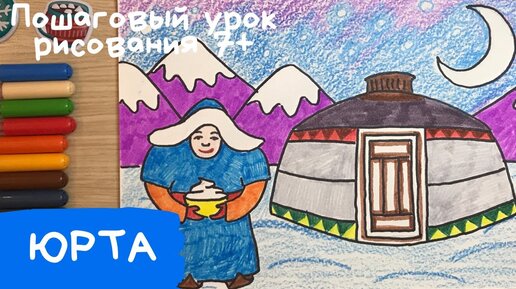 Юрта рисунок. Сагаалган рисунок. Степь рисунок. Народы гор и степей рисунок. Рисунок белый месяц. Карандаши и краски.