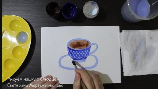 Рисуем чашку с блюдцем гуашью