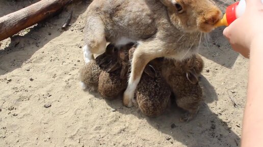 Зайчиха кормит зайчат-сирот. Пуша и приёмыши. Методика "Дом Зайца"