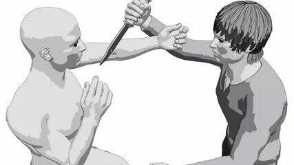 От удара ножом по шее. Ударное подавление атаки противника сериями по этажам. В.Н.Крючков