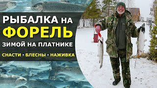🎣 Ловля ФОРЕЛИ зимой на платнике. ТРОФЕЙ на 3,5 кг | Рыбалка на Форель: снасти, блесны, приманки. Жареный стейк.