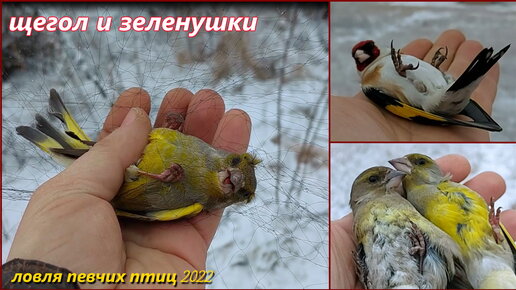 Ловля певчих птиц. Щегол и зеленушки.
