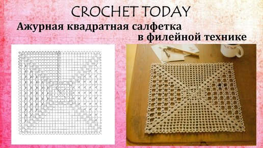 Ажурная квадратная салфетка в филейной технике. Увеличивается до размеров скатерти.