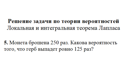 Пример решения задачи на тему локальная и интегральная теоремы Лапласа задача №5 Высшая математика