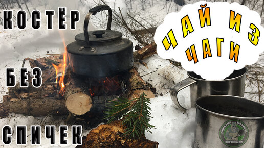 Костёр без спичек в зимнем лесу. Чай из чаги.