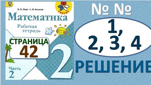 №1, №2, №3, №4 страница 42 Рабочая тетрадь часть 2. Математика 2 класс. Решение. Школа России. Решение с объяснением.