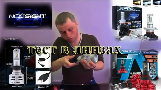 LED ЛАМПЫ H7 В ГАЛОГЕНОВОЙ ЛИНЗЕ // "Novsight", "Nighteye", "X3"