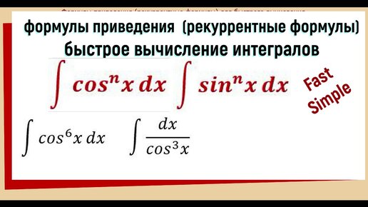 Рекуррентные формулы для интегралов ∫ (cosx)^n dx и ∫ (sinx)^n dx с доказательством