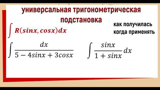 Универсальная тригонометрическая подстановка / формулы с выводом / примеры