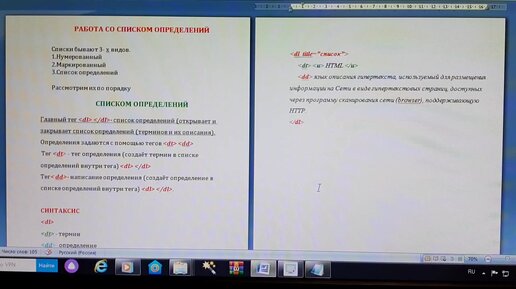 Работа со списком определений с применением языка вёрстки HTML