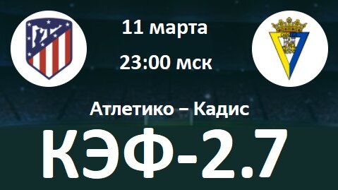 Атлетико - Кадис прогноз на футбол 11 марта 2022г. от Личного каппера.