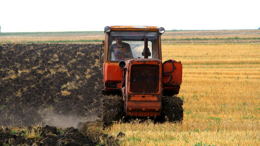 Трактор ДТ-75 с плугом ПЛН-4-35. Советская классика