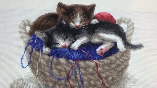 ФИНИШ !\КОТЯТА В КОРЗИНЕ от РИОЛИС/СП"МОИ ЛЮБИМЫЕ КОТЫ - 2\ПРОЦЕСС и ГОТОВАЯ РАБОТА ! Вышивка
