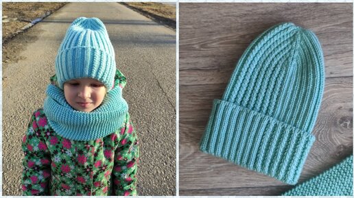 Детская шапка с отворотом спицами