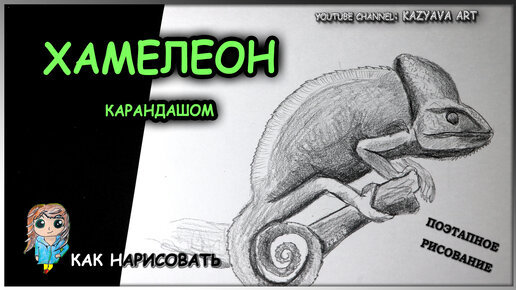 Как нарисовать Хамелеона карандашом поэтапно. Kazyava art