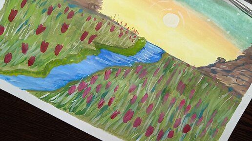 Рисую поле с тюльпанами вечером
