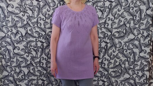 Безрукавка-туника спицами на круглой кокетке«Листопад».Подробный МК.