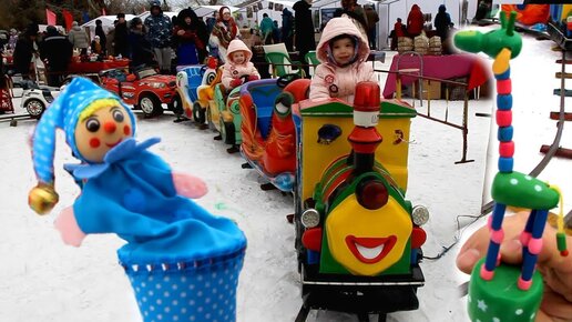 VLOG: МАСЛЕНИЦА ДЕНЬ 2(ч1). Детские аттракционы: карусель - паровозик, батут. Катание на пони!