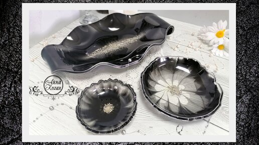 🖤ТЕХНИКА ЗАЛИВКИ "ВУАЛЬ" ЭПОКСИДНОЙ СМОЛОЙ🖤Черный набор посуды из смолы🖤