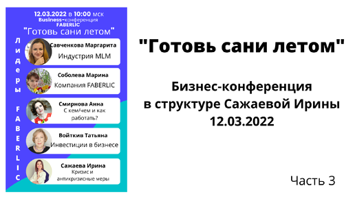 #Бизнес-конференция #FABERLIC "Готовь сани летом" структуры Сажаевой Ирины. 12 марта 2022 г., часть 3
