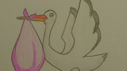 Как нарисовать аиста, несущего малыша \\ Рисунок для детей // Аист карандашами