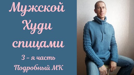 Мужской Худи спицами 3 - я часть! Сшиваем изделие,вяжем ворот. Подробный МАСТЕР КЛАСС!