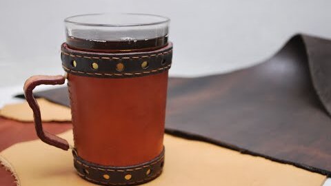 Подстаканник из натуральной кожи и металла.