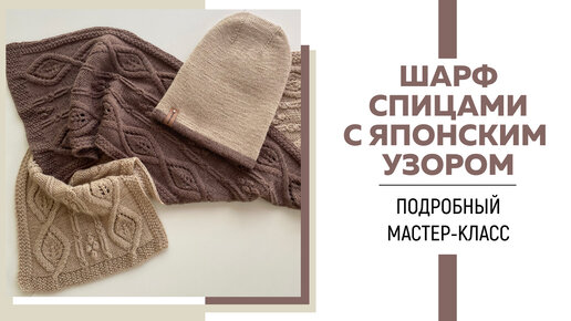 АЖУРНЫЙ ШАРФ СПИЦАМИ С ЯПОНСКИМ УЗОРОМ «ЛИСТЬЯ» || Очень подробный мастер-класс ||