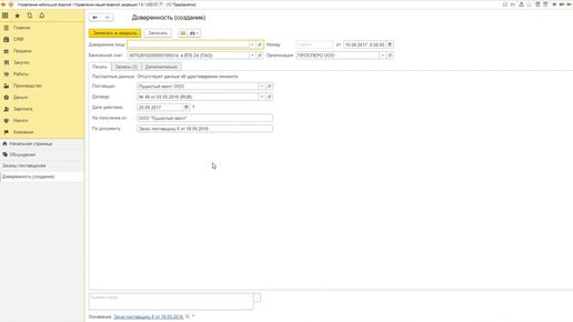 1С:УНФ - 006 Доверенность на основании Заказа поставщику / Самоучитель по УНФ / Айтон - УНФ