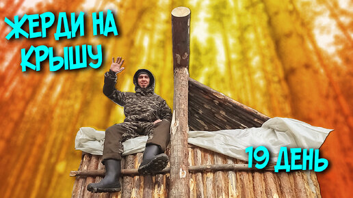 Укладываю жерди на крышу. Хижина в лесу своими руками. 19 день стройки.