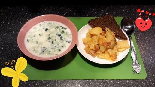🥒🍟Окрошка на сыворотке. Гарнир - жареная картошечка на сале!