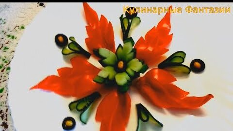Очень Красивый Цветок из Огурца! Украшения из Перца!
