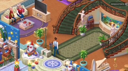 Игра Homescapes/Новогодних декорации/Обзор готового дома родителей Остина.Глава завершена. Покупка загородного дома у озера.