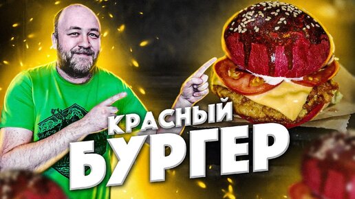Красный БУРГЕР Необычный бургер с куриной котлетой красной булкой и оригинальным соусом Чикенбур